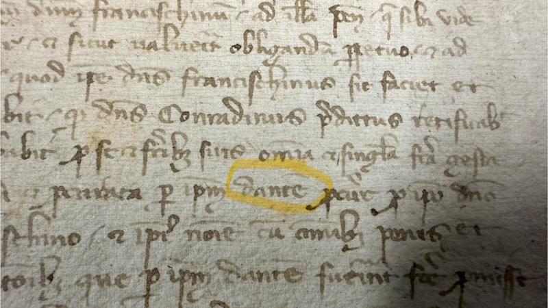 Benché infatti le tavole in questione non riportino la firma autografa di Dante, che come sappiamo non ci è mai pervenuta, esse riportano la fedele annotazione del notaio Giovanni di Parente di Stupio che proprio quella mattina, “ante missam” (prima della messa, quindi all’incirca alle nostre 6.30) messer Dante Alighieri si era